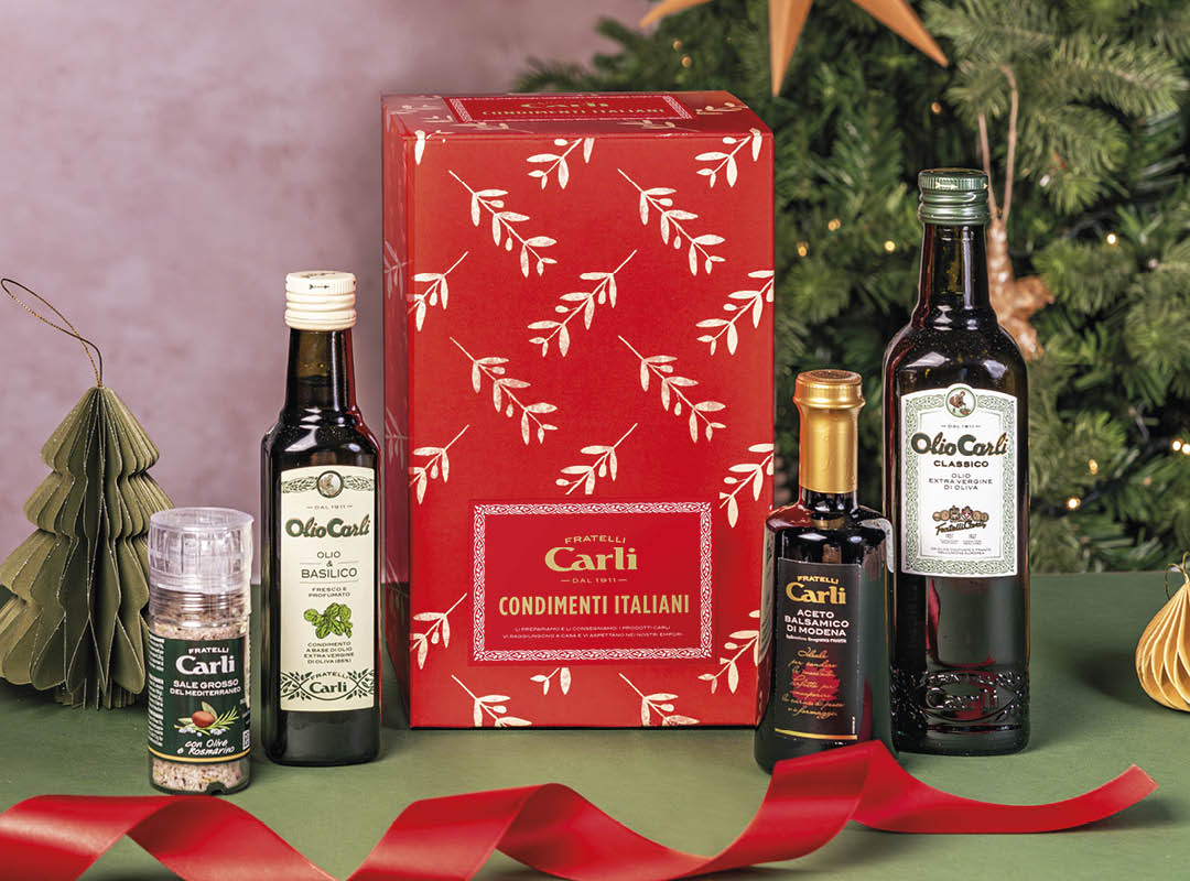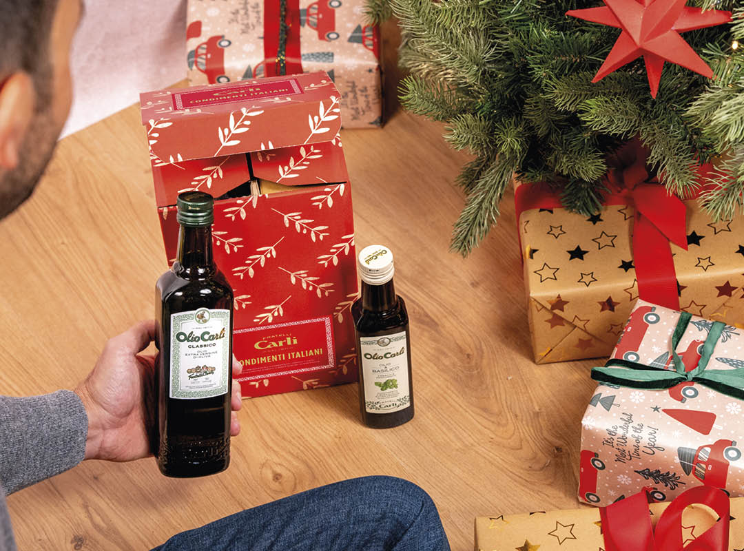 Ein Geschenkpaket, das die Kunst des Würzens auf italienische Art zelebriert. Sorgfältig ausgewählte Zutaten verfeinern jedes Gericht: harmonisches Olivenöl Extra Vergine, frisches Basilikumöl, intensiver Balsamico di Modena IGP und mediterranes Meersalz mit Oliven und Rosmarin.