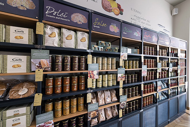 L’Emporio de Monza, situé en centre-ville, est bien plus qu’une simple boutique : c’est un lieu où l’on se sent accueilli comme un invité de marque, un espace où l’on peut savourer la relation unique qui nous lie depuis toujours à nos consommateurs. Il ne reste plus qu’à franchir la porte pour s’immerger dans une expérience qui éveille tous les sens et découvrir, sur les étagères, les conserves les plus typiques de la tradition gastronomique ligure et méditerranéenne. Le tout, bien sûr, accompagné de notre huile.