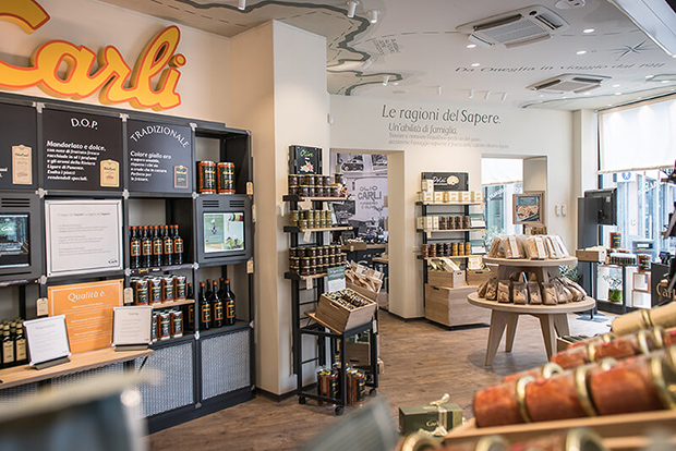 Grâce à l’élégance sobre de son aménagement, l’Emporio offre une atmosphère chaleureuse et accueillante, qui rend la visite agréable et fait sentir chaque client comme un invité privilégié. En y entrant, on découvre l’essence même de notre entreprise : la passion pour la qualité des produits – de l’Huile Carli aux nombreuses spécialités gastronomiques ligures et méditerranéennes – ainsi que cette relation particulière, faite de confiance et de proximité sincère, qui nous distingue depuis toujours.