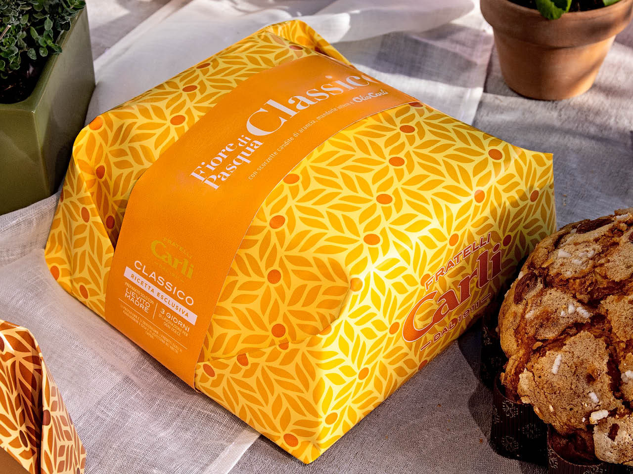 Notre Fleur de Pâques Classique est un gâteau de Pâques moelleux et délicatement parfumé, préparé avec du levain naturel et de l’Huile d’Olive Vierge Extra Carli, sans beurre. La recette est enrichie d’écorces d’orange confite et d’un glaçage croquant aux amandes. Une spécialité qui conjugue élégance et authenticité, idéale pour célébrer Pâques avec goût et l’exigence de la haute pâtisserie italienne.